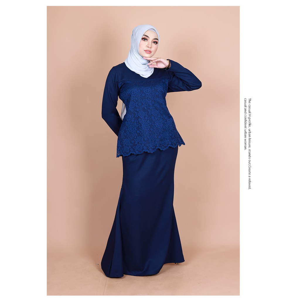 Stock Clearance Dark Blue Koleksi Baju Kurung Lace Plain Printed Warna Dark Blue Biru Gelap Shopee Malaysia